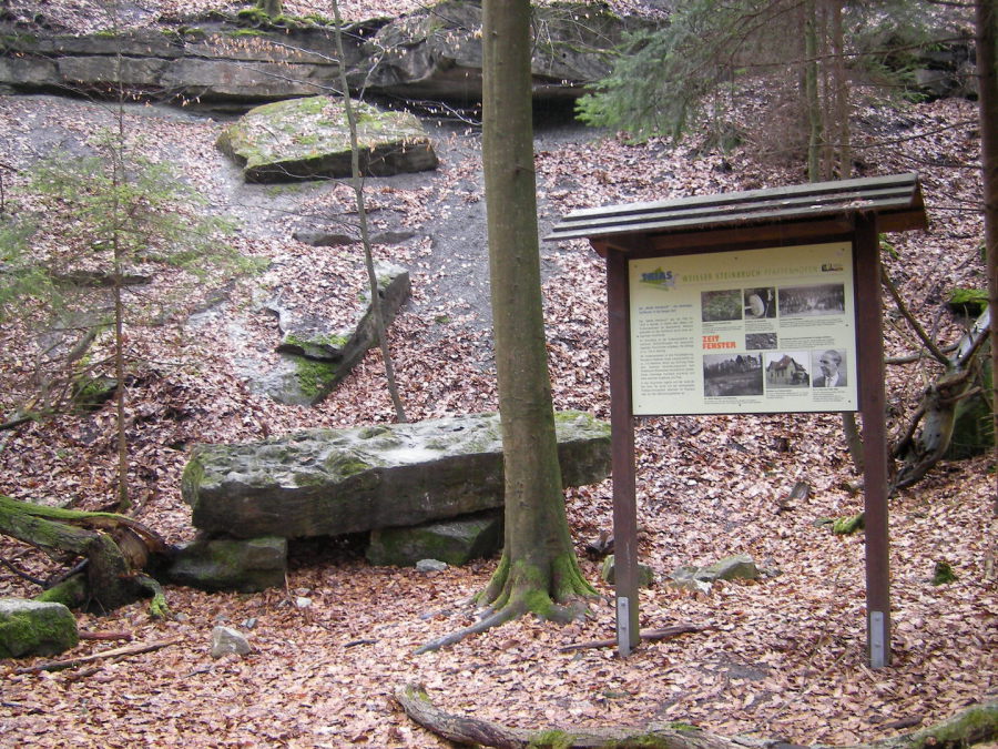 Hier wurde Stubensandstein als Baumaterial abgebaut. Dieser Sandstein aus der Keuperzeit ist in weiten Teilen Nordwürttembergs verbreitet und seit dem Mittelalter ein bedeutender Baustein für Kirchen, Rathäuser usw. Das leicht zu Sand zu vermahlende Gestein wurde auch bei der Mörtelherstellung sowie als Streu- und Scheuersand für Straßen oder die Holzböden der Wohnstuben (daher kommt der Name!) genutzt. Der Stubensandstein enthält lokal geringe Mengen an Gold, wobei die Ausbeute für einen wirtschaftlichen Abbau zu gering war. Ein Landschaftspanorama vom Aussichtspunkt unterhalb des Steinbruchs rundet die Exkursion ab.