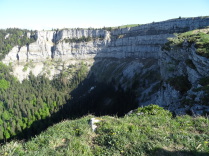 Der Jura ist das Grenzgebirge zwischen Frankreich und der Schweiz. Er reicht im Süden bis nördlich von Grenoble und hat im Norden seine Fortsetzung mit dem Randen und der Schwäbischen Alb, die schließlich in die Fränkische Alb übergeht. Von Freiburg geht die Fahrt zunächst in den Basler Jura und weiter nach Sainte Ursanne. Danach geht die Fahrtstrecke durch das Doubstal nach Pontarlier. Dort ist das Standquartier für diese Reise. Ein ganzer Tag ist dem Gebiet zwischen Pontarlier und Ornans gewidmet. Dabei findet unter anderem Wanderungen zur Louequelle und bei Ornans statt. Den Schwerpunkt dieser Wanderreise bildet der Jura von Neuchâtel. Der Felskessel des Creux-du-Van (Abbildung) und die Areuse-Schlucht werden ebenso durchwandert wie das Moorgebiet von Ponts de Martel. Am Rückreisetag erfolgt noch der Besuch eines bekannten Findlings sowie des Botanischen Gartens von Neuchâtel. Das genaue Programm ist letztendlich auch witterungsabhängig und wird mit den Teilnehmenden am Vorabend gemeinsam besprochen. Als Lektüre zur Studienreise empfiehlt sich das Sonderheft Jura von Neuchâtel. welches im Shop erhältlich ist. Ein paar Bildimpressionen von der Reise finden Sie hier.